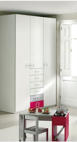 In fase di acquisto dell’armadio è importante strutturarne con cura l’attrezzatura interna.E’ essenziale innanzitutto che abbia dei cassetti per la biancheria (meglio se esterni in modo che i bimbi possano utilizzarli da soli). Per evitare che sbattano quando i bimbi li chiudono meglio acquistare armadi con cassetti con guide a rientro ammortizzato. Finchè i bimbi sono piccoli non hanno molti capi da appendere, è preferibile quindi munire l’armadio di un numero sufficiente di ripiani interni, avendo sempre cura di disporre anche questi ad altezza di bambino. Per imparare a vestirsi in autonomia è importante che i bambini possano accedere liberamente ai loro vestiti.